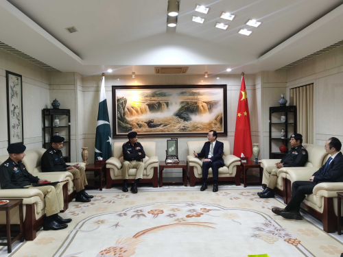 2025年12月25日,驻卡拉奇总领事杨云东在总领馆会见信德省警察总监梅蒙。